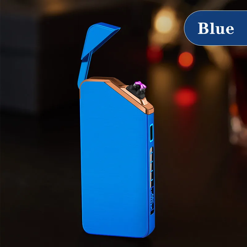 Smart Chip Electric Dual Arc USB Lighter Outdoor Windproof Pulse Plasma Flameless Digital Power Display Lighter Men's Gift